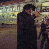 Staunend steht der stattliche Mann in seinem prächtigen historisch anmutendem Gewand vor dem Wandbild an der Fassade des langen Ganges an der Augustusstraße in Dresden. Zögernd geht er an der Fassade auf und ab und betrachtet dabei die Ahnengalerie der Wettiner.