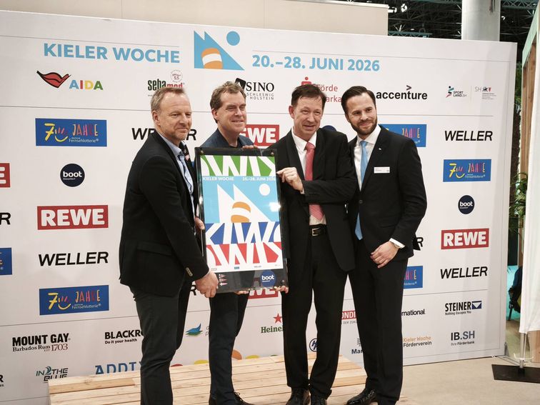 Auf der Bühne des Sailing Centers geben Vertreter der Stadt Kiel und der Kieler Woche einen Ausblick auf das kommende Sommerfestival. Der Empfang bietet Raum für Gespräche, Networking und maritime Begegnungen in internationalem Messeambiente.
